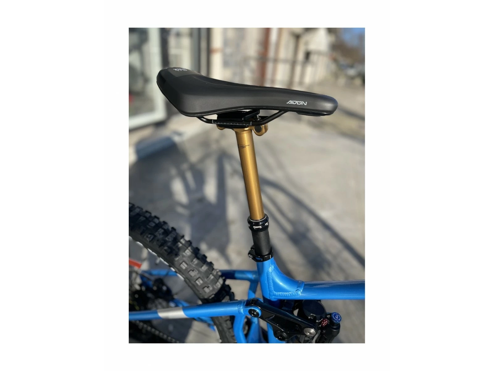 Fox Float-X LV Factory Kashima, 205 x 65 mm. Réglages : compression 2 positions de levier, compression basse vitesse, rebond basse vitesse, précontrainte de l’amortisseur pneumatique. Trunnion montage haut, bagues inférieures 25 x10 mm